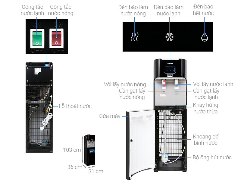 Cây nước nóng lạnh Toshiba Cây nước nóng lạnh Toshiba RWF-W1669BV(K1)